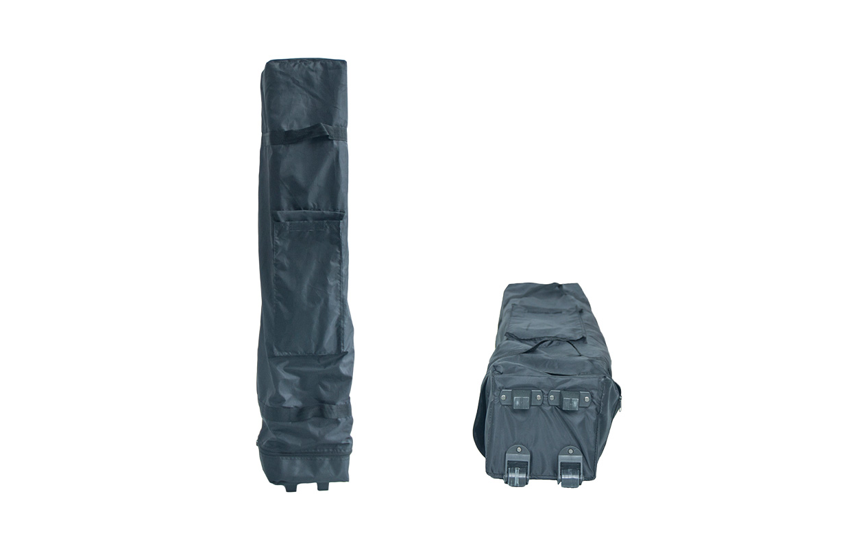 Transportez vos tentes pliantes facilement et en toute sécurité. Conçus en oxford PVC enduit 300 x 600D avec roues PP Ø 32,50 mm, ils assurent robustesse, mobilité et rangement optimal, pour tous les modèles de 3 x 3 à 5 x 5 m.